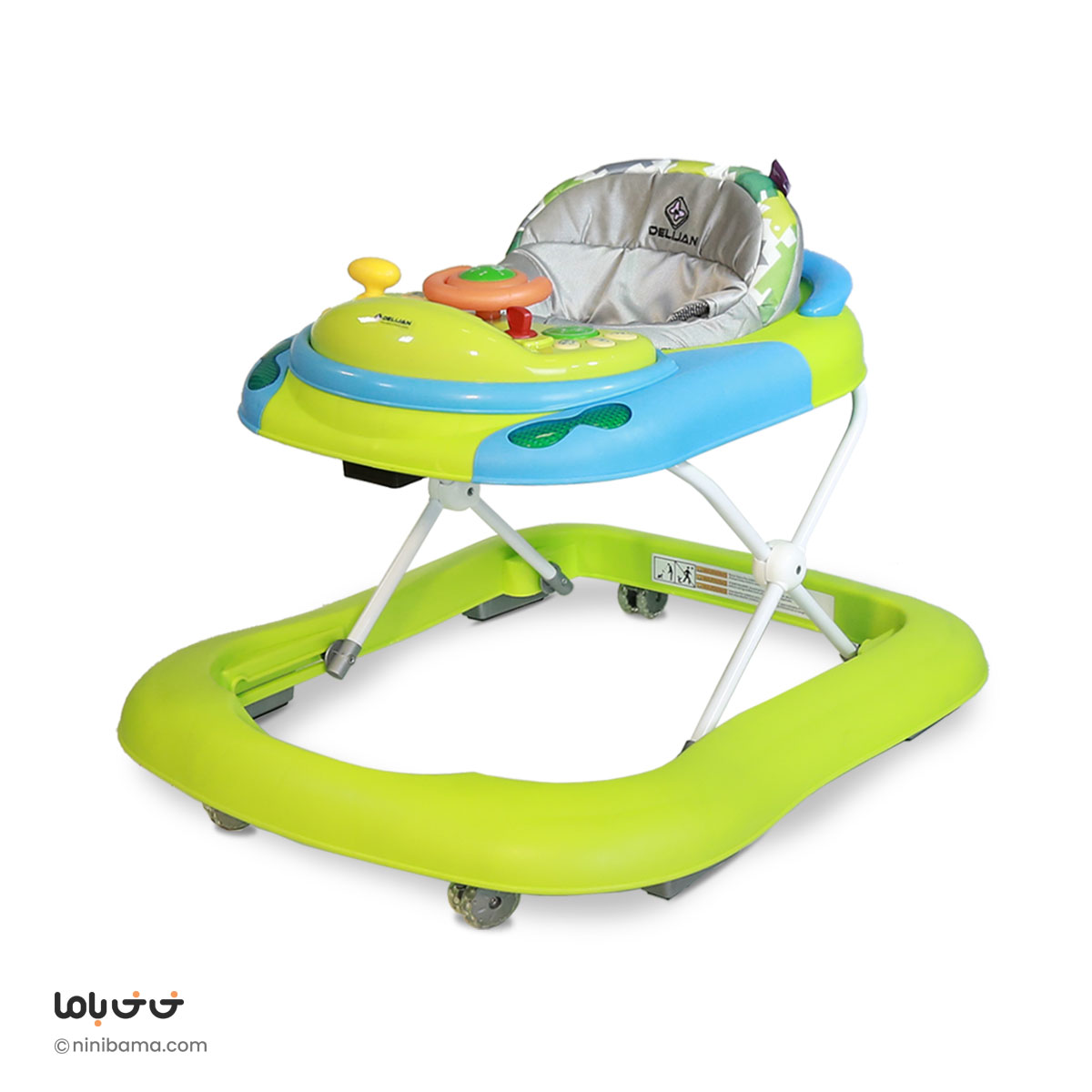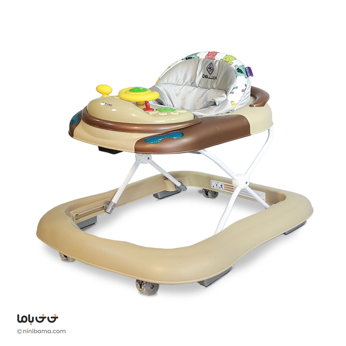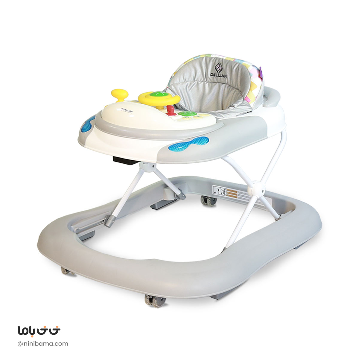 پارچه قابل شست و شو ,ترمز ایمنی سقوط از پله ,تنظیم ارتفاع در سه حالت ,چرخ های چند جهته و ثابت ,قابلیت جمع شدن ,کنسول موزیکال با اسباب بازی |