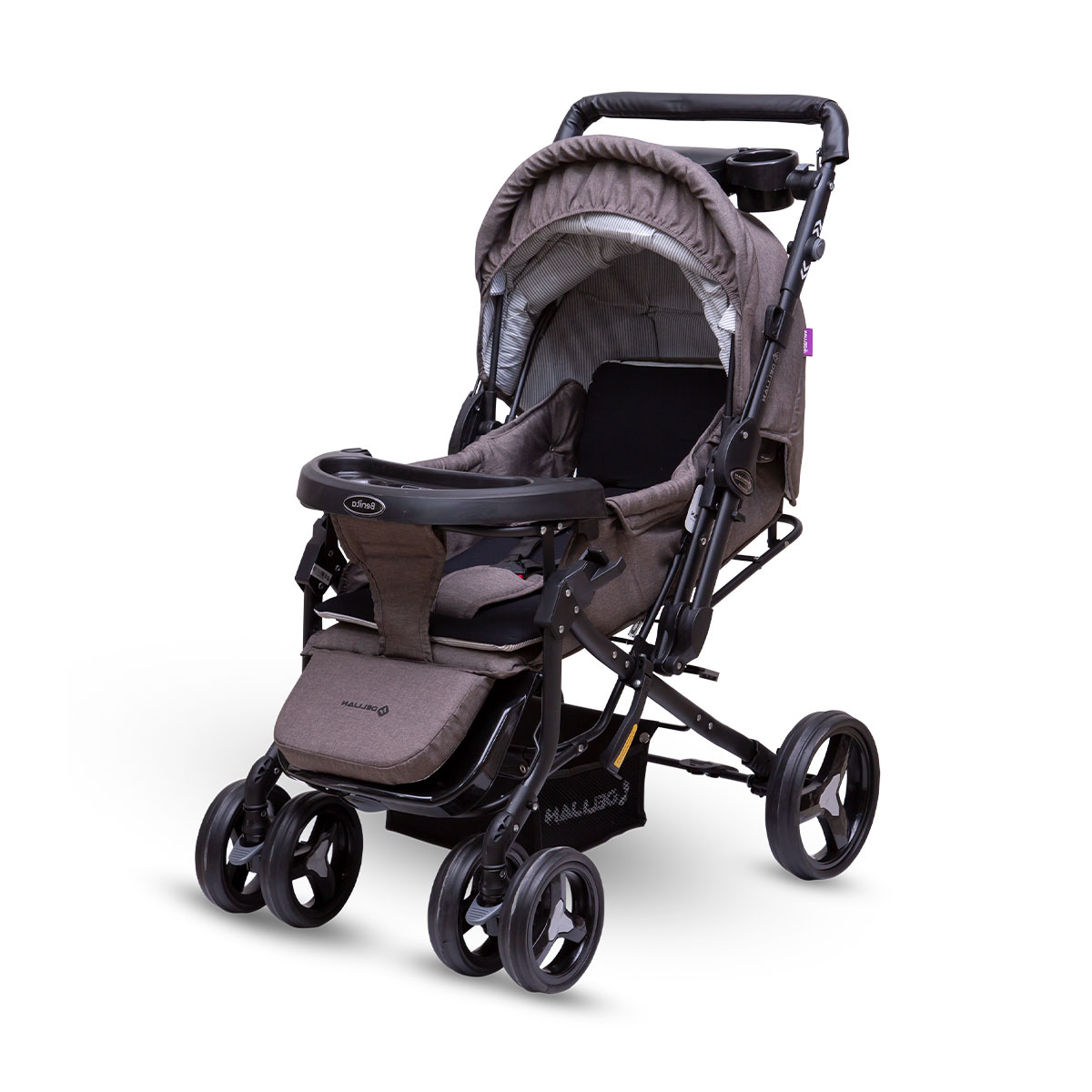 یکی از نقاط قوت این کالسکه، قابلیت برگشت دسته به سمت مادر است که امکان تعامل بیشتر والدین با نوزاد را فراهم میسازد. همچنین ارتفاع دسته قابل تنظیم است تا والدین با قدهای مختلف بتوانند بدون خستگی کالسکه را هدایت کنند.