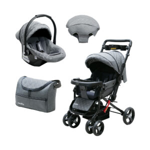این محصول دارای نشیمن چندحالته، دسته قابل تغییر جهت، سایبان، سبد لوازم و کمربند ایمنی بوده و بهراحتی جمع میشود.