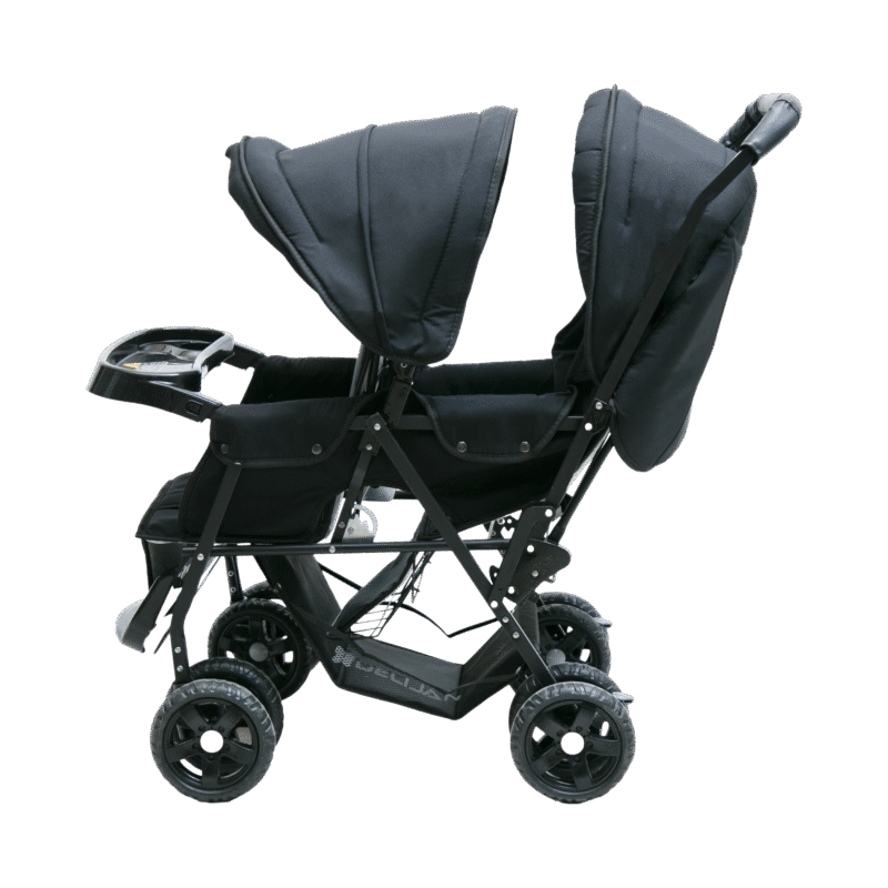 کالسکه دوقلو دلیجان مدل ونوس بهترین انتخاب برای خانوادههایی است که دارای دو کودک با سنین نزدیک هستند. این کالسکه دوقلو با طراحی پشت سر هم، کنترل و هدایت آسانتری نسبت به مدلهای دیگر کالسکه دوقلو دارد و حمل و نقل آن بسیار راحت است.مدل ونوس دارای چهار جفت چرخ (۸ چرخ) با روکش EVA است که حرکت روان و بدون لرزش را حتی روی سطوح ناهموار تضمین میکند. چرخهای جلو قابلیت چرخش ۳۶۰ درجه و قفل شدن دارند، و چرخهای عقب مجهز به ترمز ایمنی هستند. سایبان گسترده و قابل تنظیم برای هر دو کودک، پشتی نشیمنگاه قابل تنظیم در چند حالت (نشسته، نیمه خواب، خواب کامل) و جاپاییهای قابل تنظیم از دیگر امکانات مهم این کالسکه دوقلو است.وجود سبد خرید بزرگ و مقاوم، سینی غذا و دو عدد جای لیوانی جداشدنی، رفاه والدین را در هنگام بیرون رفتن، خرید و گردشهای روزانه افزایش میدهد. بدنه فلزی مستحکم، وزن سبک 9.3 کیلوگرم و حجم جمعشونده کم، مکسیمم راحتی در حمل و نگهداری کالسکه را فراهم کرده است.این کالسکه دوقلو دلیجان از بدو تولد تا حدود ۳ تا ۴ سالگی کودکان مناسب بوده و با استانداردهای ایمنی و کیفیت بالا، انتخابی ایدهآل برای خانوادههای دوقلو است.